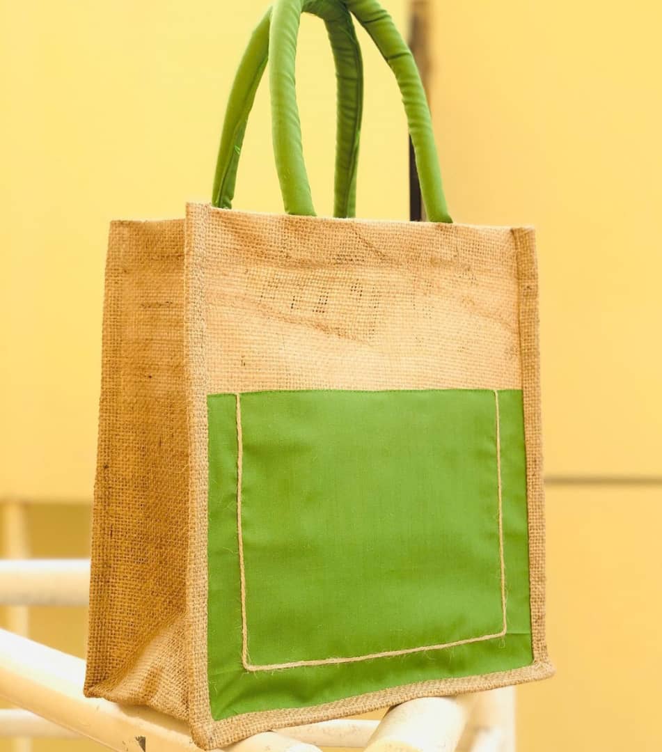 Shopping bag green & brown